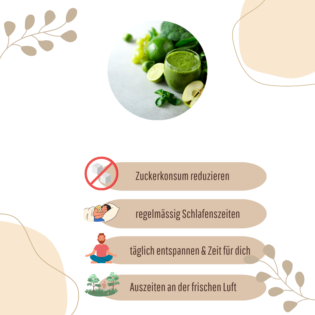 Heute möchte ich dich sensibilisieren, wie einfach du deine Gesundheit im Alltag unterstützen kannst. Mit diesen Tipps gelingt es dir, dich ausgewogener zu ernähren, Stress zu reduzieren und dich mehr zu bewegen. Aber auch mehr Fokus auf dich und deinen Körper zu legen.